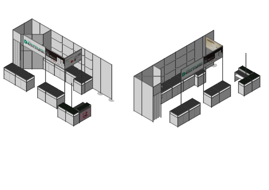 現場で始めて図面を見る作業員も多く、複雑なつくりのブースになりますと施工が始まる前に図面を理解するための時間がかかってしまったり、管理者が説明をする手間がかかってしまったりして予定通りに施工が進まないケースも多く見受けられます。