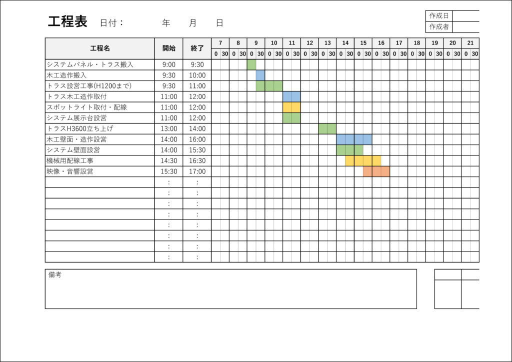 各業務の作業時間の把握や施工方法の把握ができていないと複数の業者が施工に携わっている場合、前の工程が完了していないため作業が滞ったり、正しくない順序で施工することにより施工が複雑になってしまったりして施工が遅れるだけでなく業者間のトラブルの原因ともなります。また、エンドユーザー様の製品搬入にも影響を与えてしまいます。